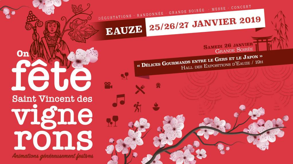 La ville d’Eauze dans le Gers sera à la fête lors de la nouvelle édition de la Saint-Vincent des vignerons du 25 au 27 janvier 2019. Durant un week-end festif, les visiteurs pourront assister à de nombreuses animations autour des produits viticoles gersois avec en point d’orgue une grande soirée « Délices gourmands entre le Gers et le Japon » le samedi 26 janvier à partir de 19h (uniquement sur réservation) . Une soirée gastronomique mêlant les spécialités japonaises et gersoises pour le plus grand bonheur des participants. Les convives auront l’occasion de déguster des tempuras de crevettes flambées à l’armagnac ou bien encore du yakitori de poulet gersois au floc de Gascogne.