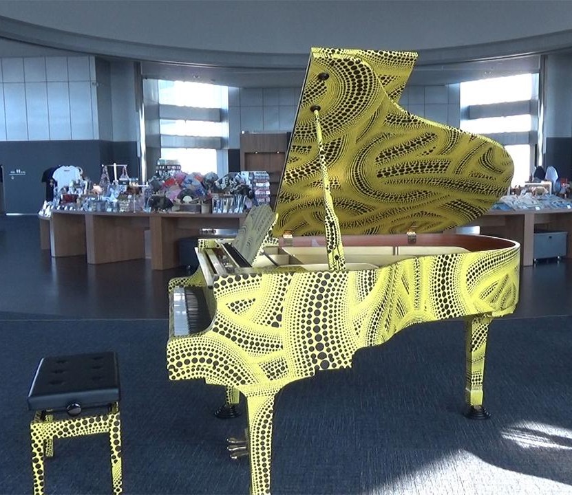 Situé au 45ème étage du bâtiment n°1, le piano a été offert par un habitant de Tokyo et customisé par l’artiste japonaise Yayoi Kusama. Ce don a fait suite à un appel lancé aux habitants de Tokyo pour offrir un grand piano. Le gouvernement japonais a reçu 8 propositions et a choisi la meilleure solution proposée.