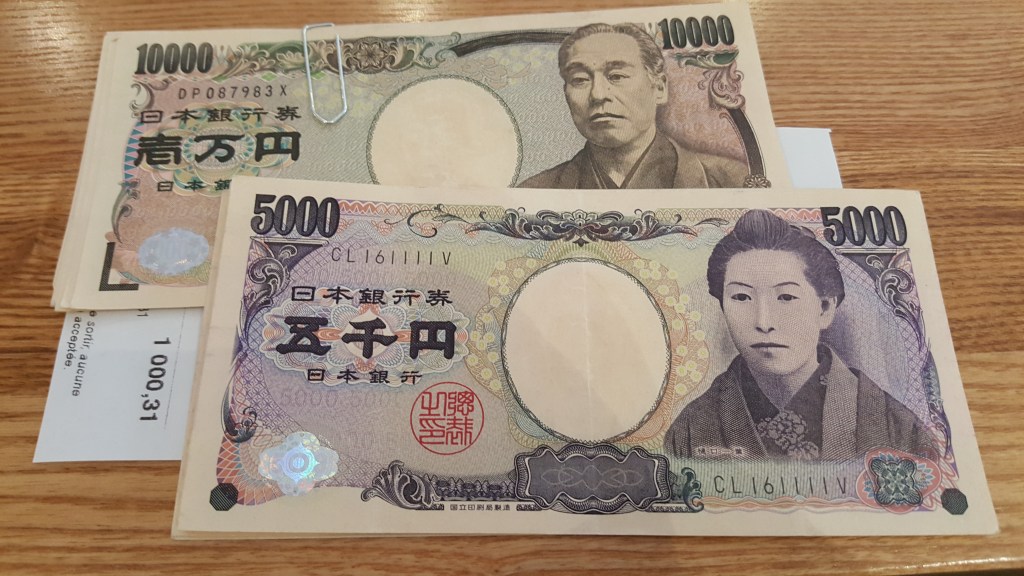 Le Japon compte quatre billets différents dont les montants différent également : 1000 yen, 2000 yen, 5000 yen et 10 000 yen.