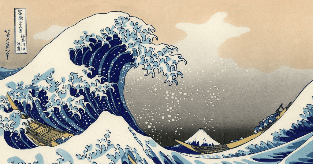 Hokusai (1760-1849) est réputé pour ses gravures sur bois et ses peintures ukiyo-e montrant des paysages, des natures mortes et des représentations de la vie quotidienne. A noter que la « Grand vague de Kanagawa » sera aussi présente sur le nouveau billet de 1000 yens prévu en 2024.