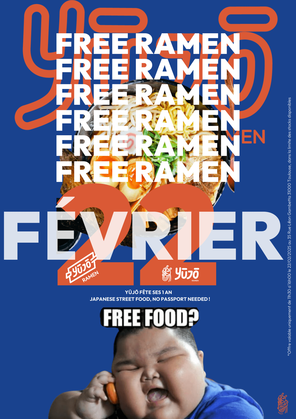 Pour marquer cette occasion spéciale, Yūjō Ramen offrira des shoyu ramen ( porc ou poulet) gratuits à tous les visiteurs de 11h30 à 16h00 le 22 février 2025 . Une manière de remercier sa communauté pour son soutien sans faille depuis l’ouverture.